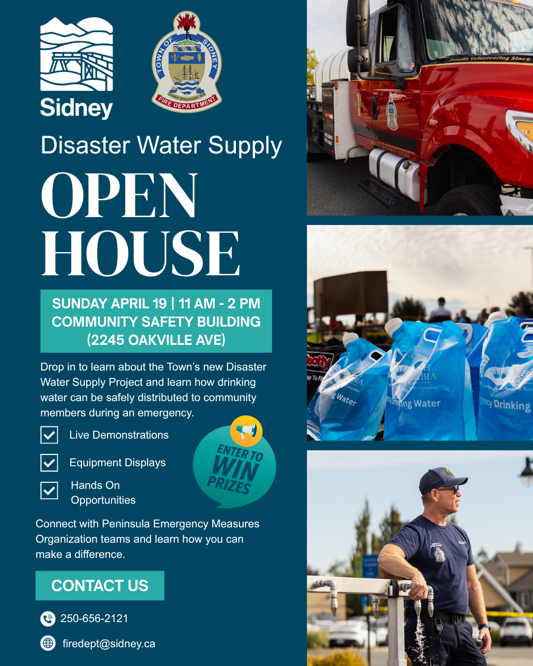 The Town of Sidney is one of the first municipalities in the Capital Regional District that is fully ready to deliver safe drinking water to the community from a secondary source in the event of a disaster, such as an earthquake or wildfire. Access to clean drinking water is essential to support public health and during the disaster recovery process.